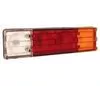 Lanterna traseira com funções de freio, posição, pisca e ré para aplicação universal e em caminhões Mercedes Benz e Ford. O produto pode ser fornecido com ou sem luz de placa e em diversas configurações de conexão elétrica.